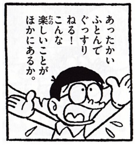H29年11月30日 最近 寝る事と 食べる事が 幸せに感じるわけです。 ☆のび太の言う通りだお(^ω^)☆ ブランド物もいらないし、 高級食材もいりません。 一日働いて、 お腹すいて帰って、 あったかい風呂に入って、 水と納豆と豆腐ともやしとごはんがあれば、 十…