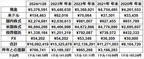 1288日目 2024年1月28日現在の資産状況を確認する(*´Д`)