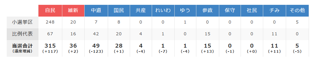 ※公明党は比例上位を独占して28人全員当選…立憲はいいように使われましたね…(*´Д`)