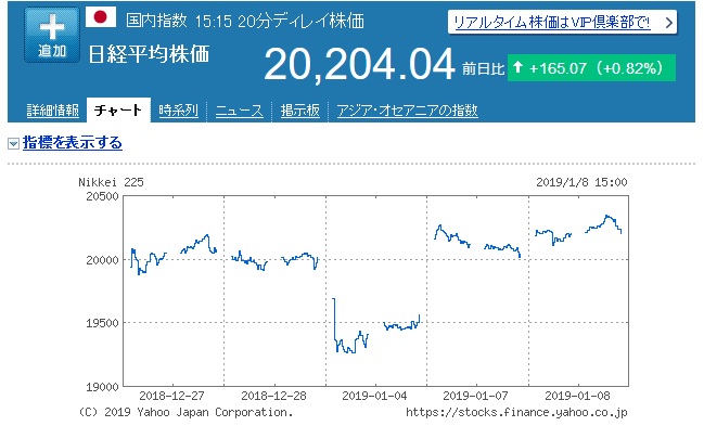 今週に入り日経平均は20,000円台を回復しました。