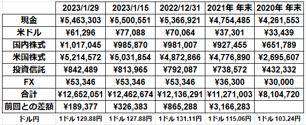 2023年1月29日現在の資産状況を確認します(*´Д`)