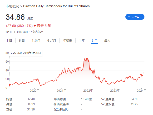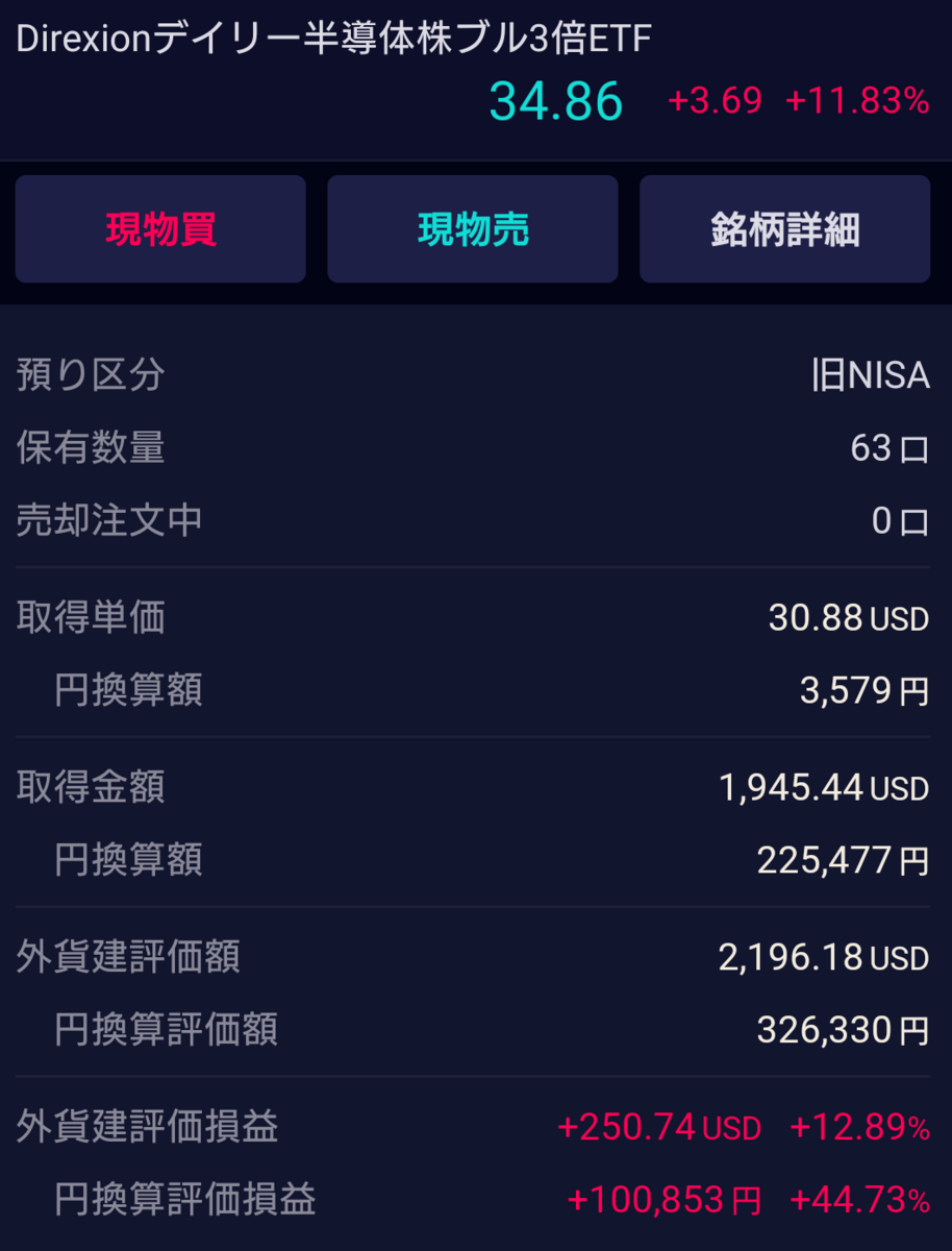 SOXL(Direxionデイリー半導体株ブル3倍ETF)ですが…
